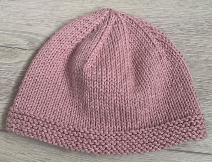 Bonnet tricoté 0-3 mois Couleur vieux rose 100% coton