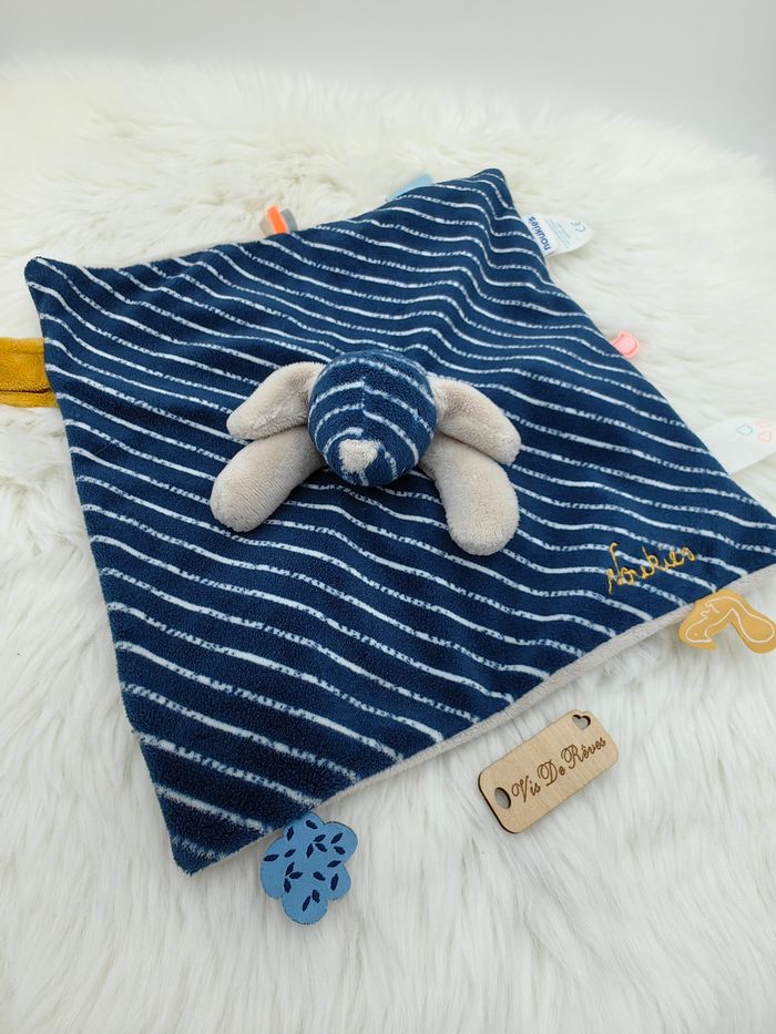 Doudou plat chien Aston Tidou Noukie's bleu marine rayé - photo numéro 5