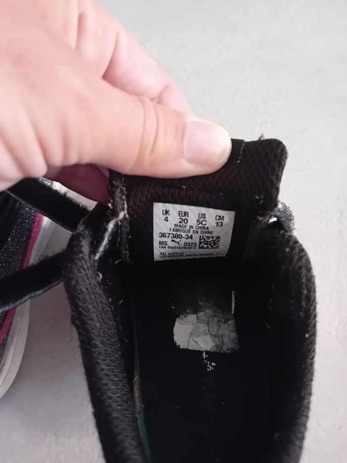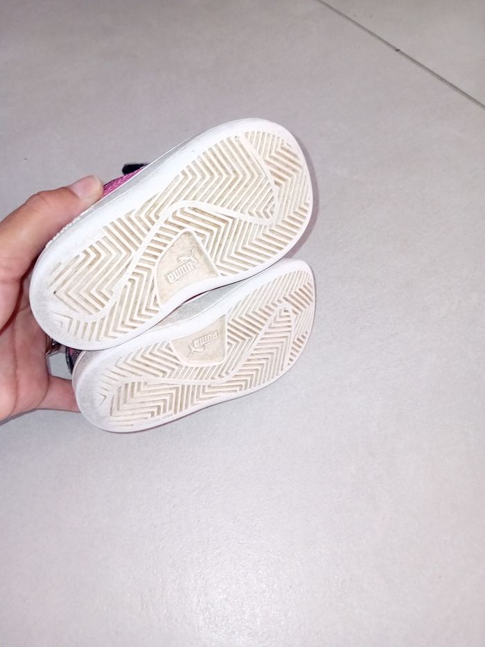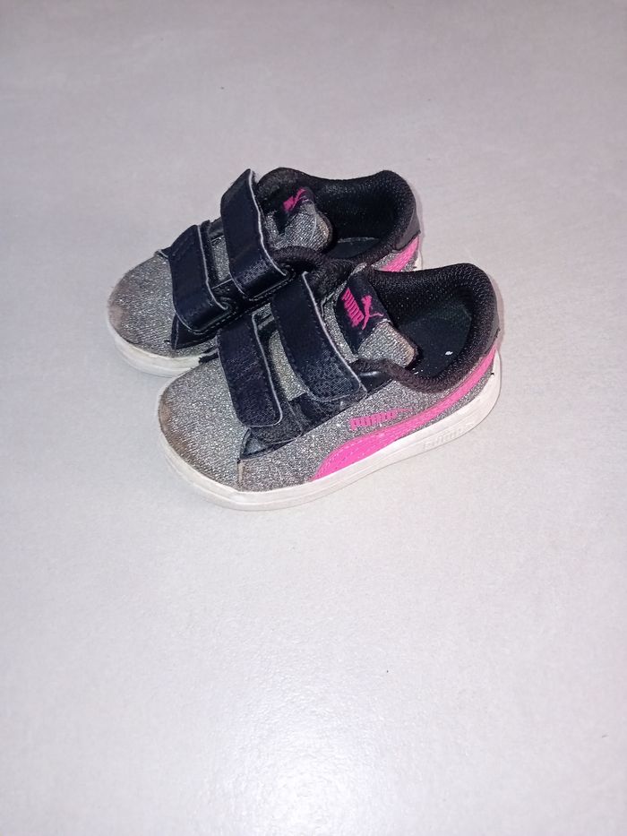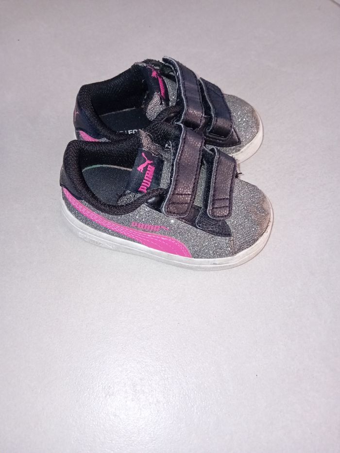 Basket Puma Grise a paillette et rose Pointure 20 Légèrement abîmé sur le devant voir photo Envoi ou venir chercher sur saint jean de vedas ou la gare de Montpellier St Roch
