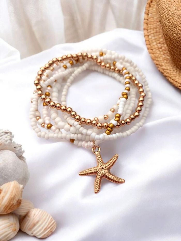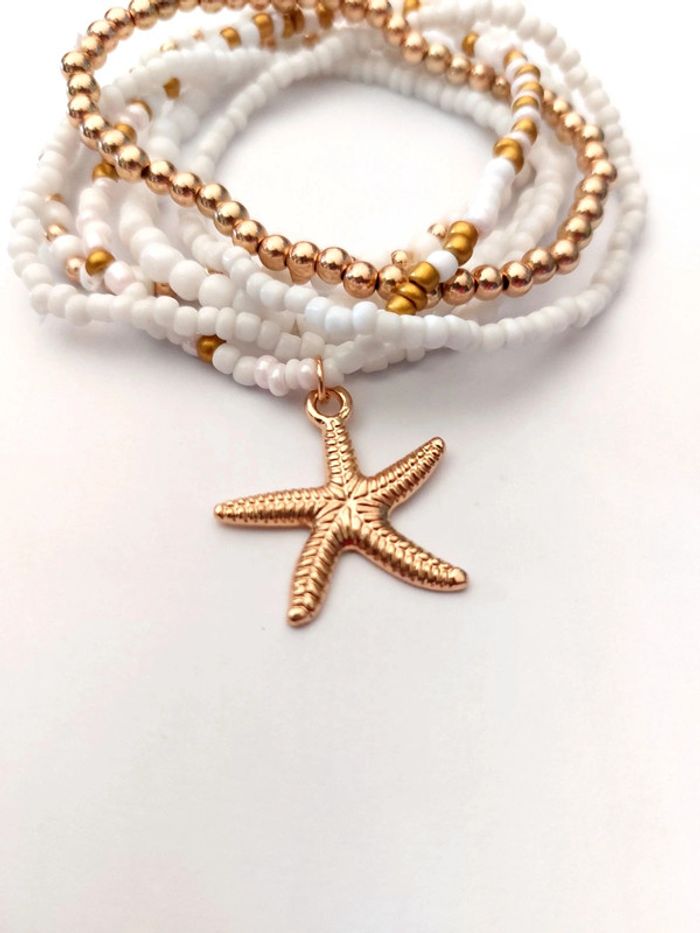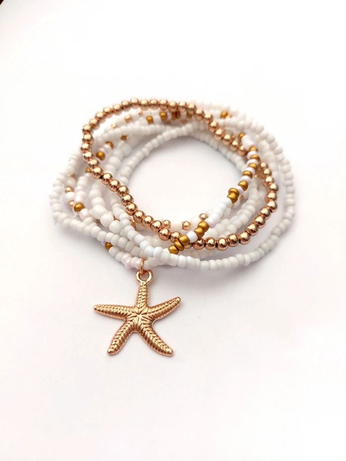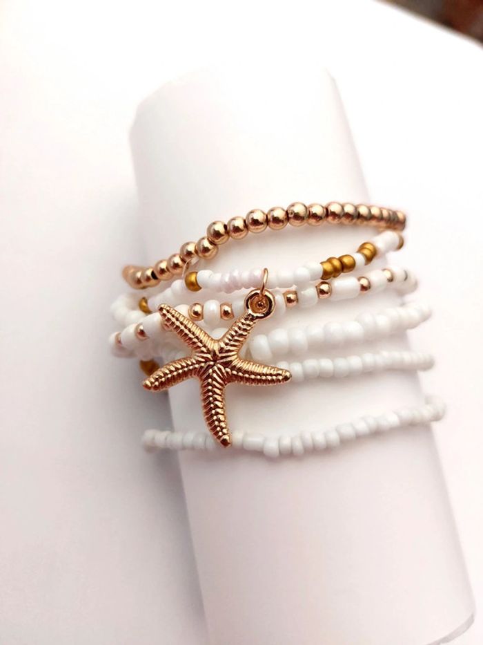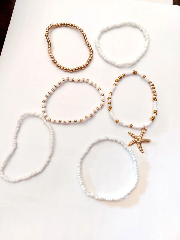 Lot de 6 bracelet de perles élastique, avec charm's étoile de mer. Blanc et doré. D'autres bijoux sont à découvrir dans mon dressing #bijouxsupernova 🌅 ✨️ Réduction sur lot ✨️ 🛍