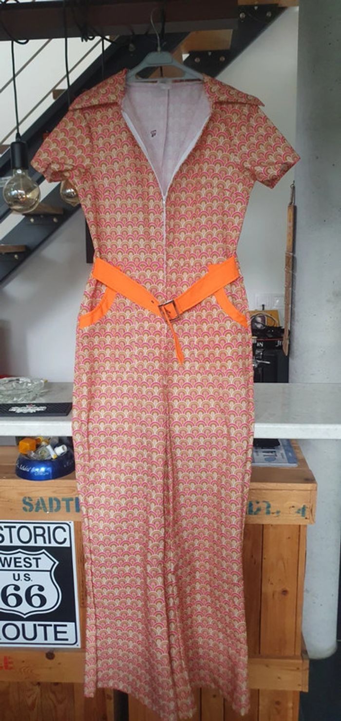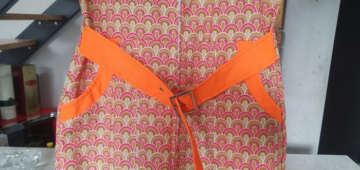 Taille s mais convient pour un 38 également Jambes larges col en pointe ceinture à la taille Fermeture sur le devant neuve jamais portée Couleur orange rose et marron/kaki Très jolie D autres articles similaires disponibles #valpotin36femme #valpotin38femme