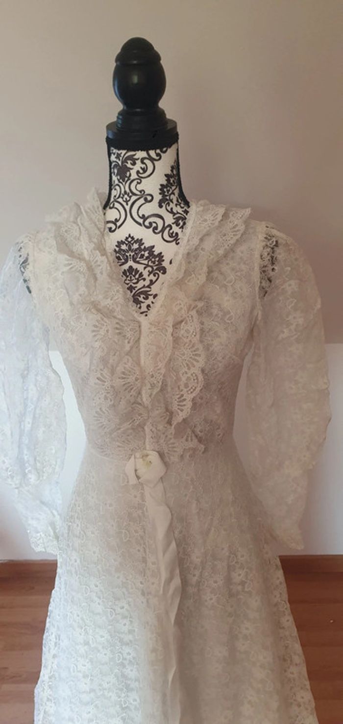 Robe de mariée vintage manches longues col v - photo numéro 1
