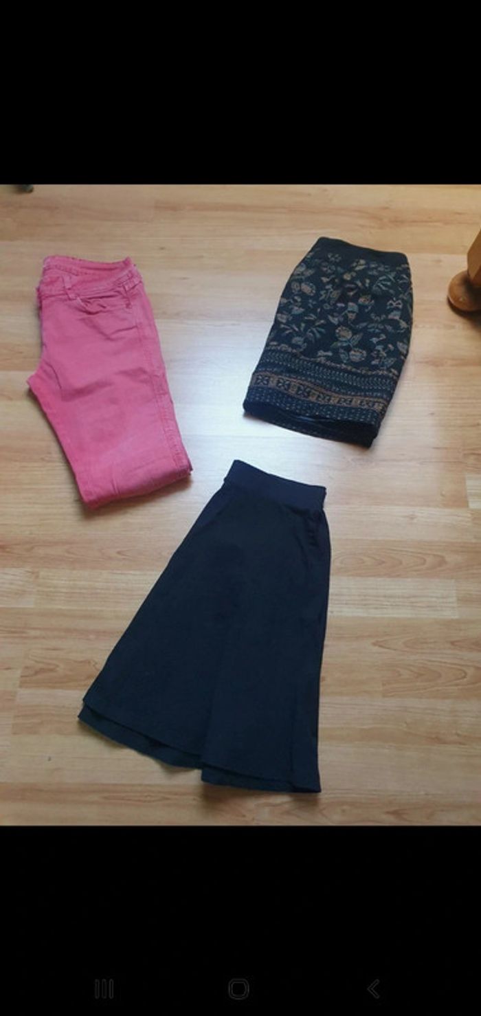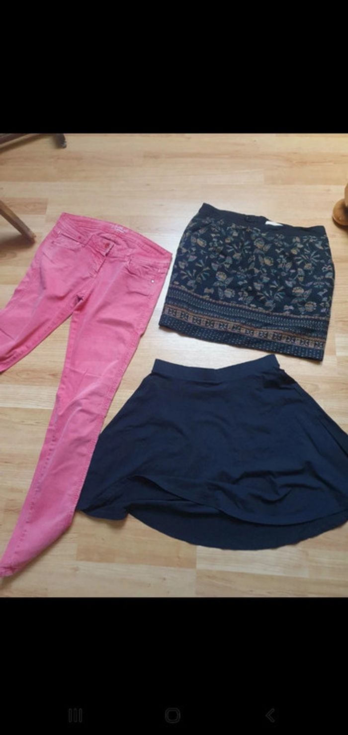 1jeans slim pimkie 1 jupe imprimée camaïeu 1 jupe noir gemo Les 3 en tres bon etat général D autres articles meme taille dans mon dressing #valpotin40femme