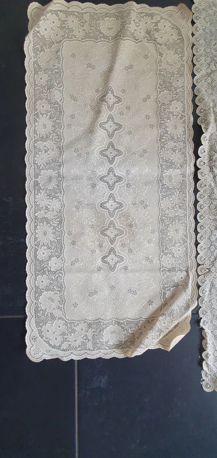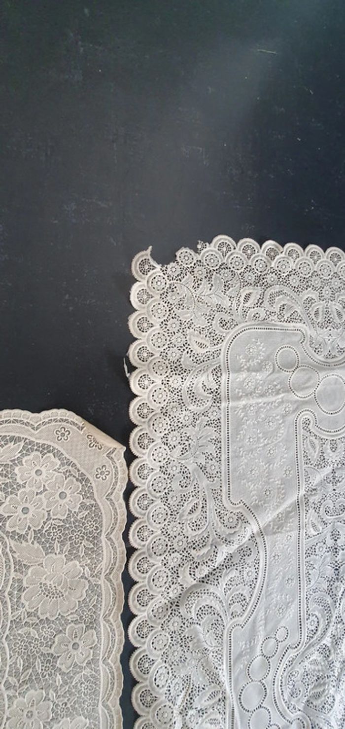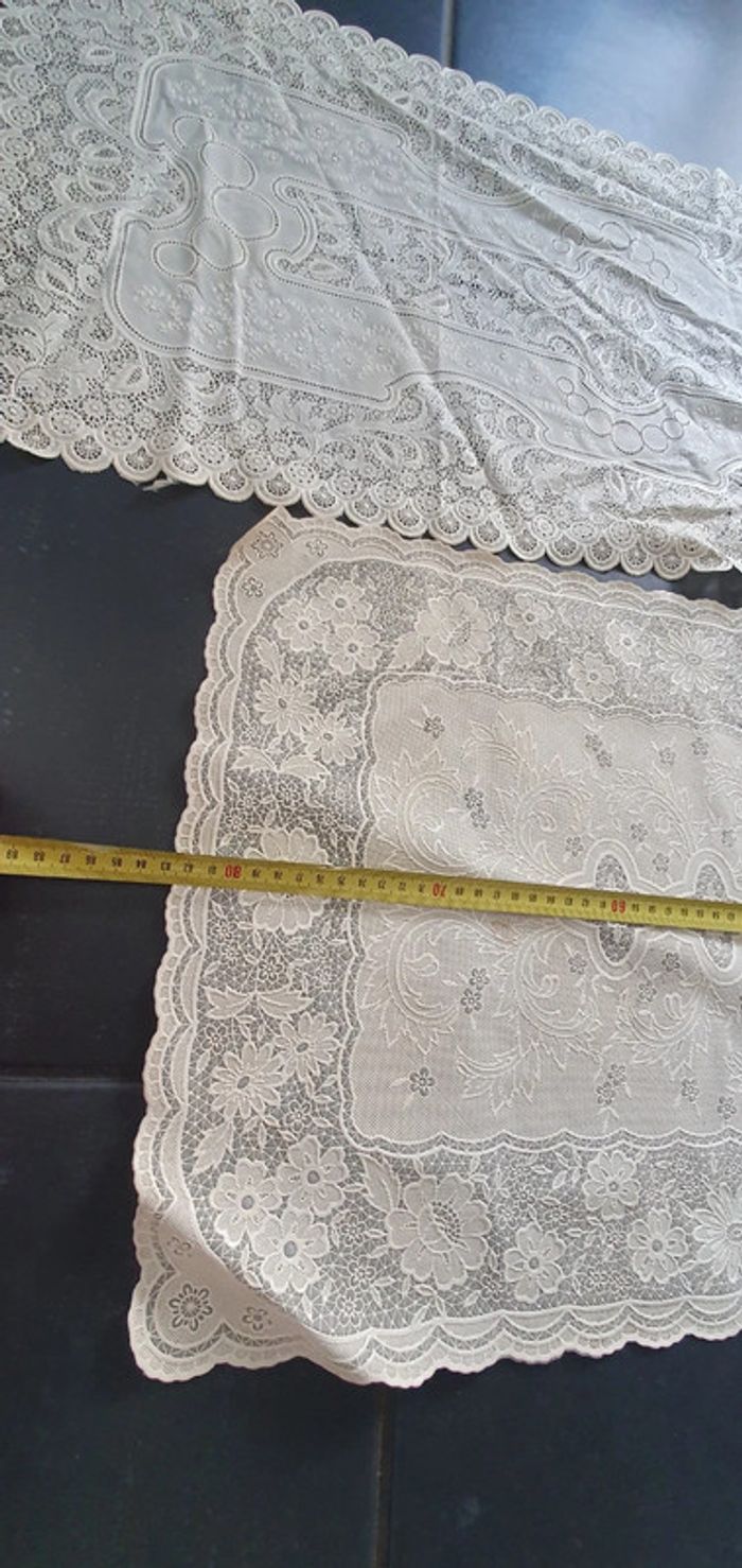 Un en bon etat l autre 2/3 bouts arrachés Mesures sur les photos vendus dans l etat taches également sur l arrière D autres articles vintage disponibles #valpotinaccessoirsmaison