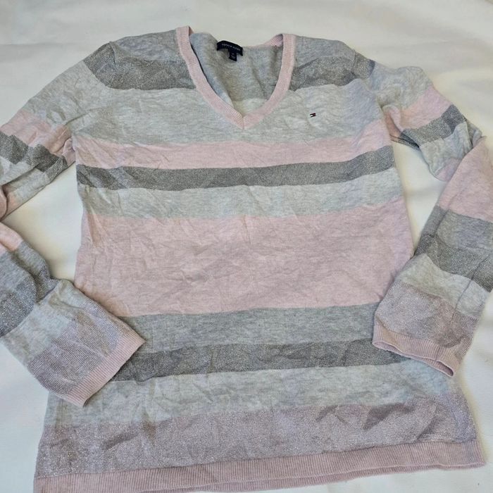 Neuf sans étiquette 🏷 🏷 Gris et rose chiné , gris pailletté Logo broder sur la manche Taille s Mesure aisselle 48 cm Mesure epaule 42 cm Longueur 50 cm B37 #neuf #tommyhilfiger #pullcolv #pullfemme #pull #tommyhilfigeroriginal #tommyhilfigervintage #tommyhilfigerhomme #tommyhilfigerfemme #tommyhilfigerpullhive