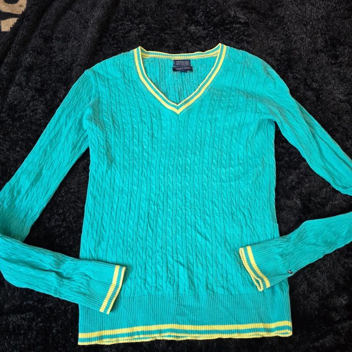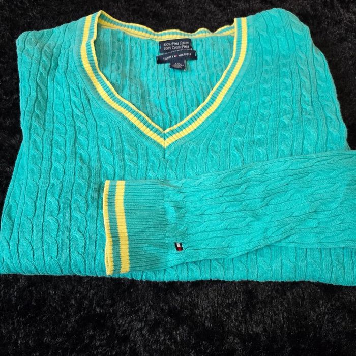Très bon état, aucun défaut Bleu turquoise Finition jaune sur le cole ,les manche et le bas du pull Logo broder sur la manche Col v Taille s Mesure aisselle 46 cm Mesure epaule 48 cm Longueur 56 cm B49 #pimacoton #tommyhilfiger #tommyhilfigeroriginal #tommyhilfigervintage #pull #maille #femme #modefemme #tommyhilfiger #tommyhilfigeroriginal #tommyhilfigerpull  #tommyhilfigerhiver #femme #pull  #tommyhilfigerpullfemme #pulltommyhilfiger