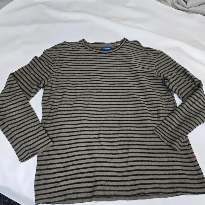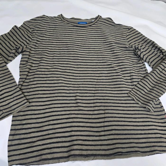 Très bon état aucun défaut, Kaki rayer noir Pull léger Taille xl Mesure aiselle 60 cm Mesure Épaule 58 cm Longueur 78 cm 896 #jackandjones #pullleger #taillexl #Rayure