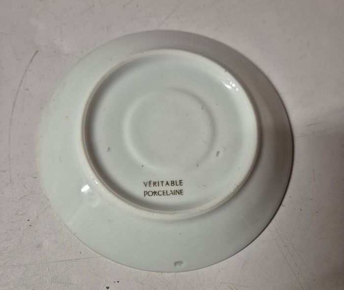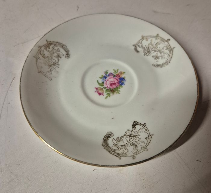 Sous tasse en porcelaine blanche fleurie Avec dorure - photo numéro 1