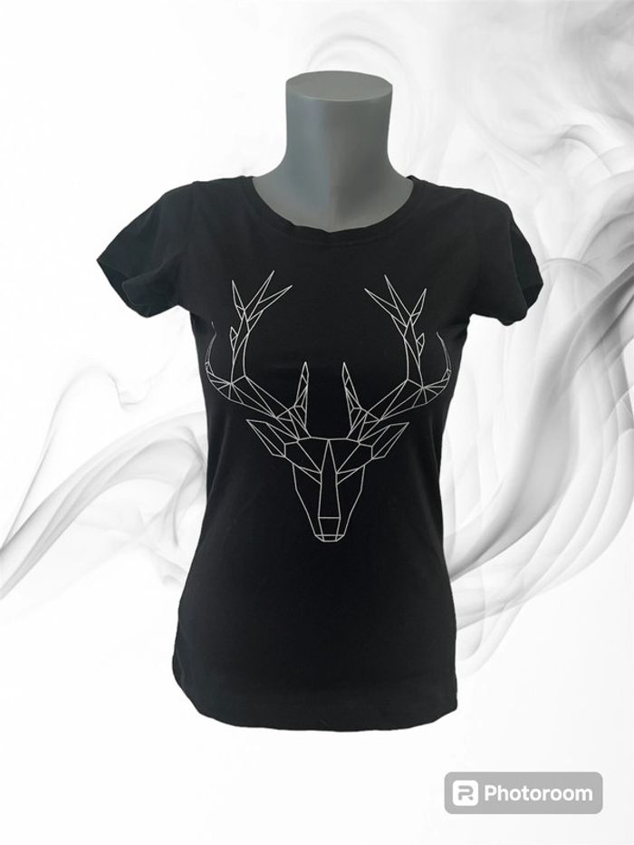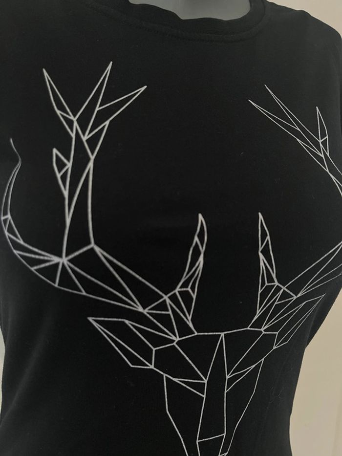 T-shirt à manches courtes noir avec imprimé renne graphie Marque : Urban Cross Taille : M, mais taille petit #HautFemmeMrbspauline #HautFemmeSrbspauline