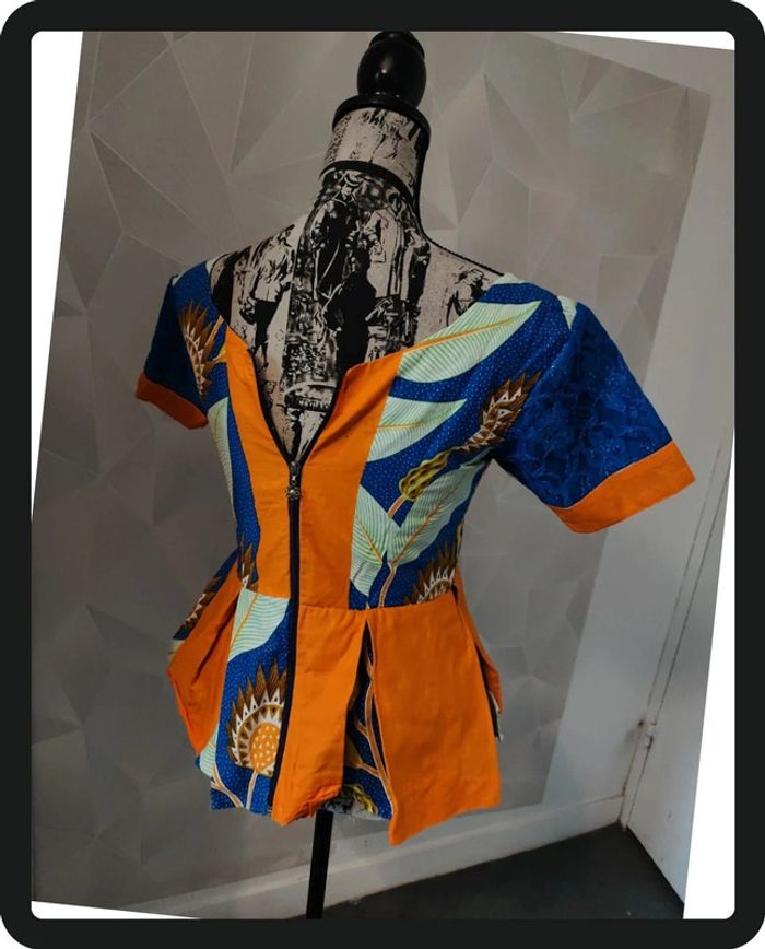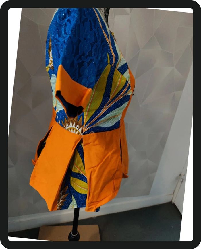 Magnifique tenue africaines fermeture à l'arrière bleu orange