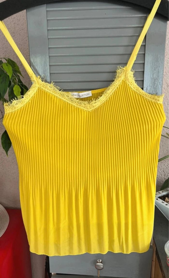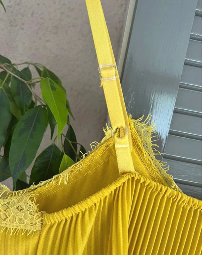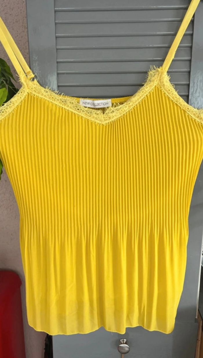 débardeur plissé fantaisie bretelles réglables dentelle en bordure non transparent ample et fluide mis une fois