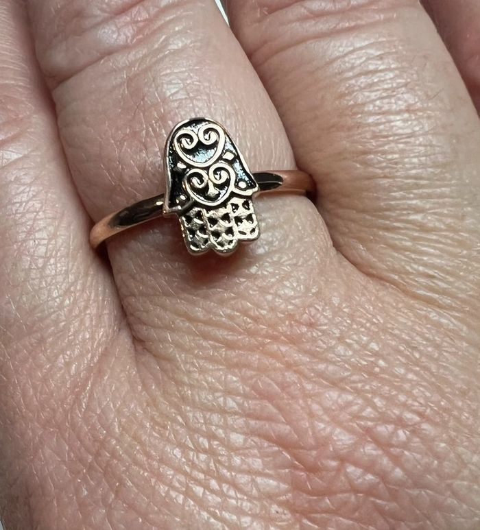 bague fantaisie neuve main de fatma coloris or rose taille 63