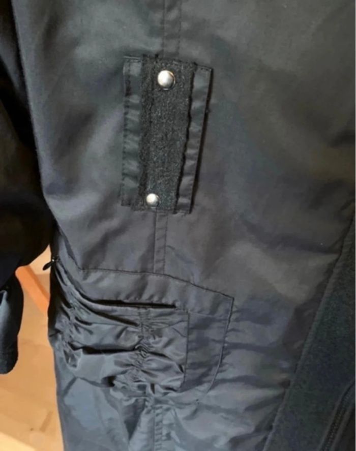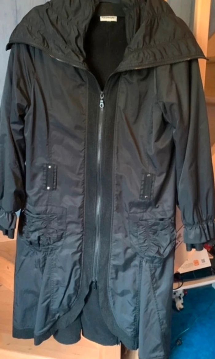 manteau noir avec divers détails fantaisies manches volantées entièrement doublé chaud taille 46