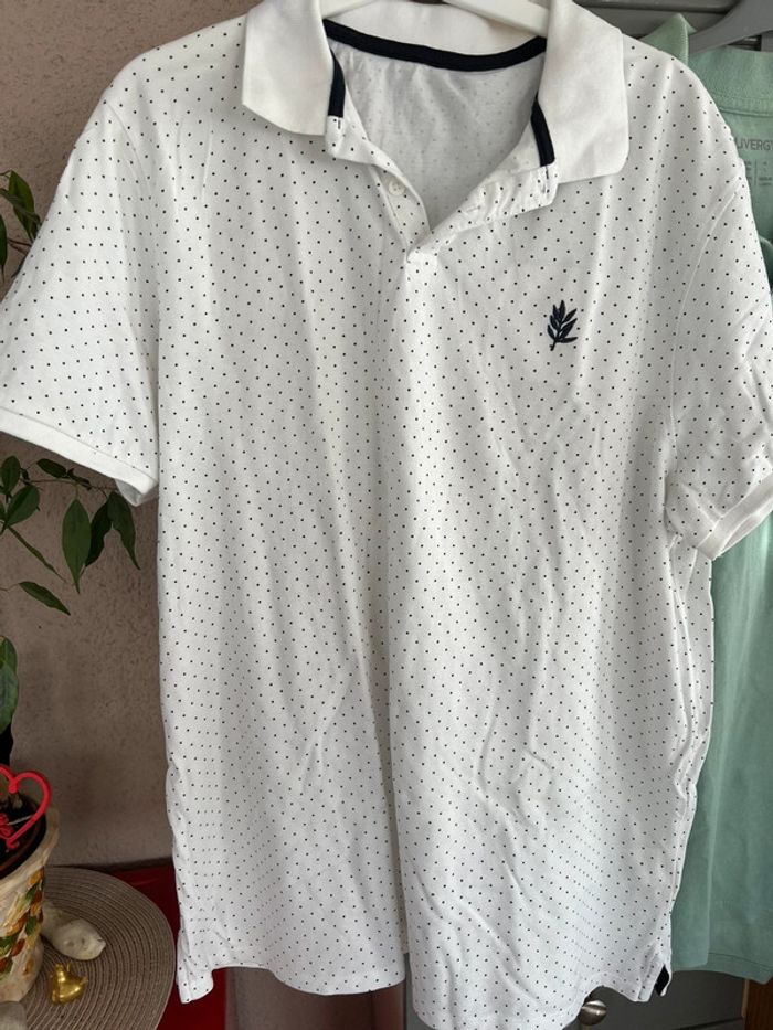 2 polos manches courtes vert pastel blanc et pois marine