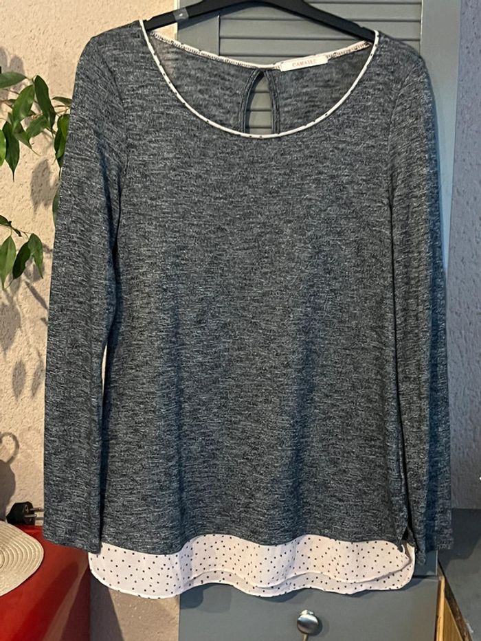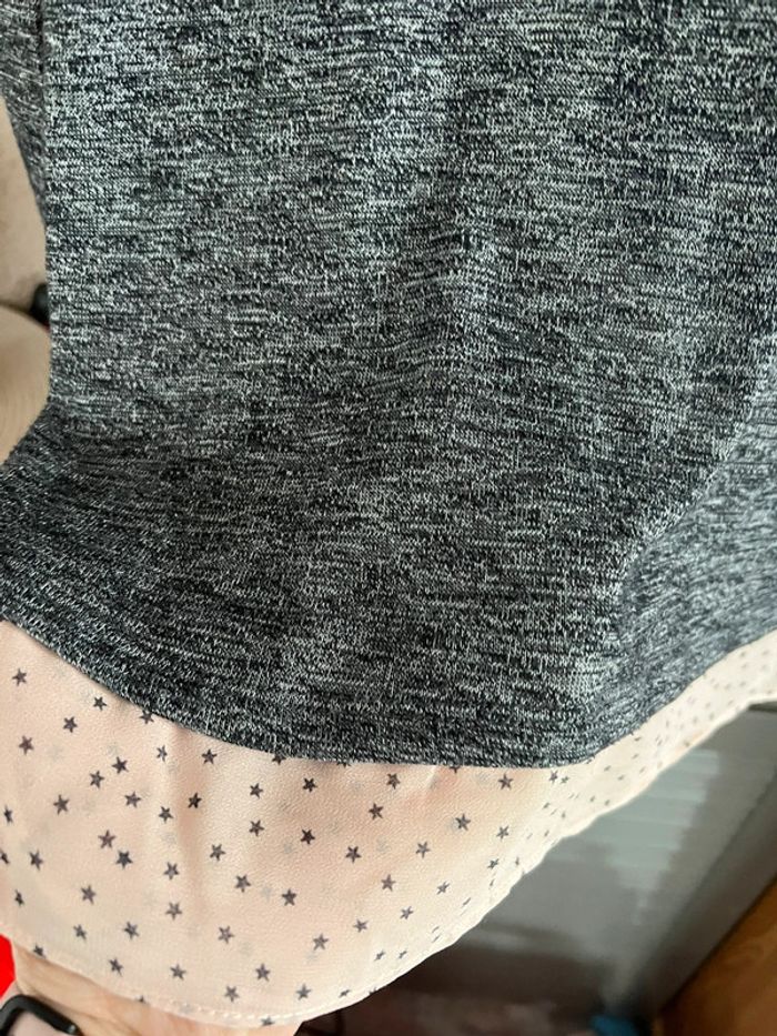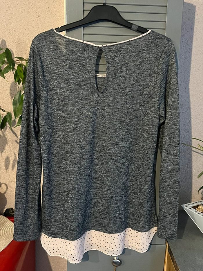 pull tunique fantaisie avec base rose poudrée et petit pois gris taille unique