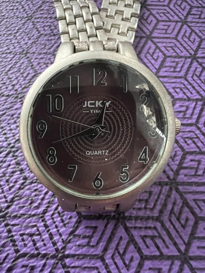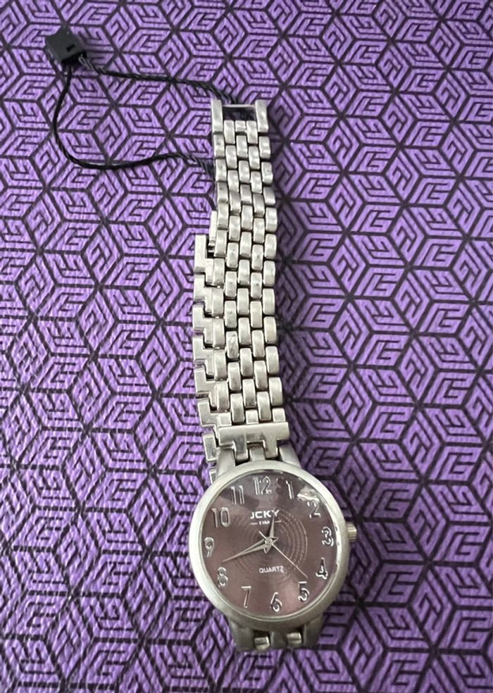 montre fantaisie neuve bracelet metal quartz intérieur violine