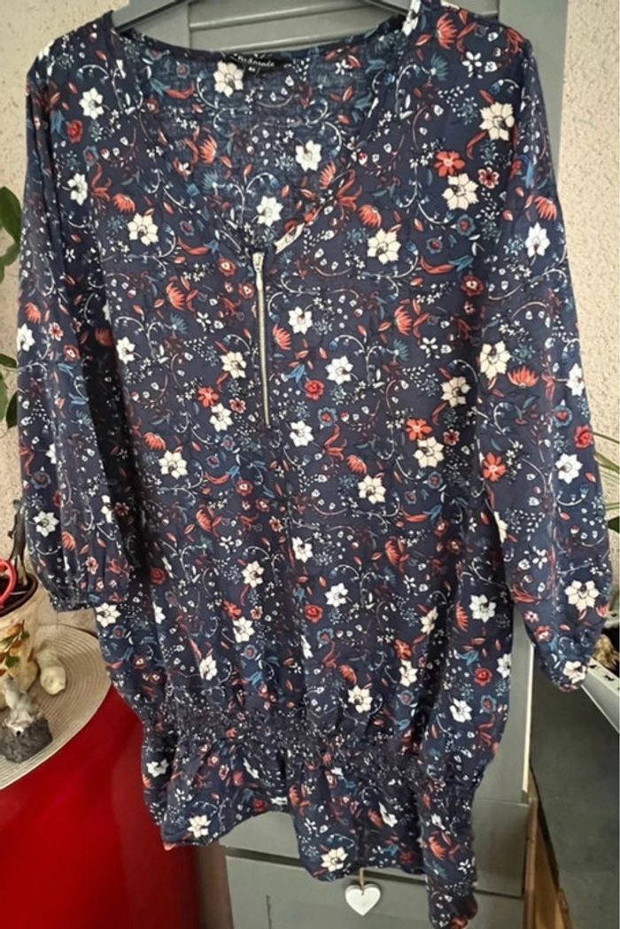 tunique fluide imprimée fleurs et feuilles hyper doux et fluide taille 44