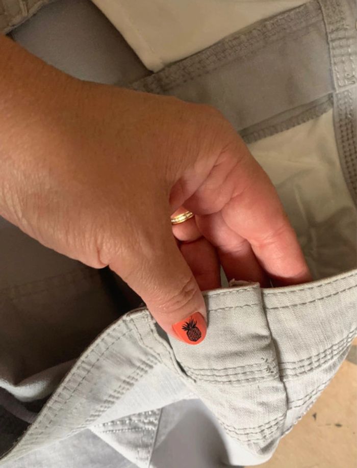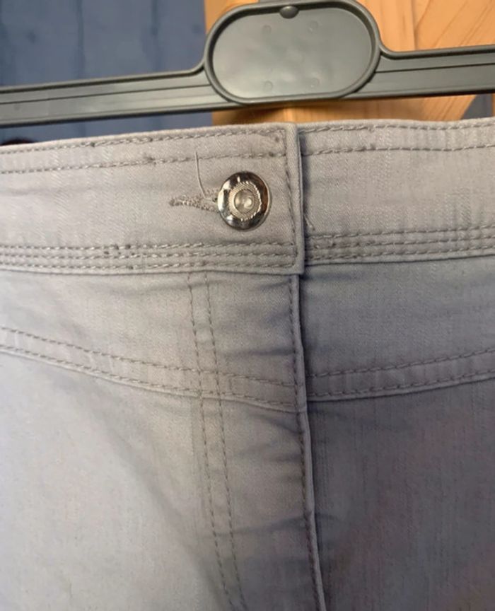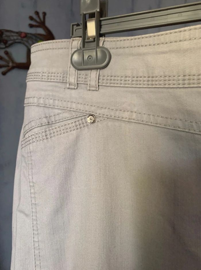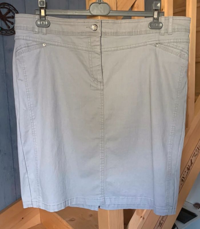 jupe grise fantaisie mise une fois taille 48/50 reprise sur les côtés car effet bombé disgracieux et maintenant droit