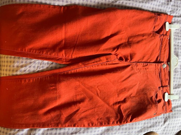 pantalon rouille fantaisie petit strass dans le bas taille 46 matière douce et agréable