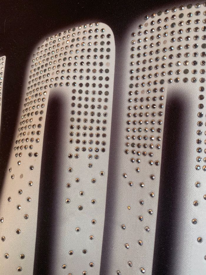 porté quelques fois satinée avec motif strass des petites bouloches mais a peine visible