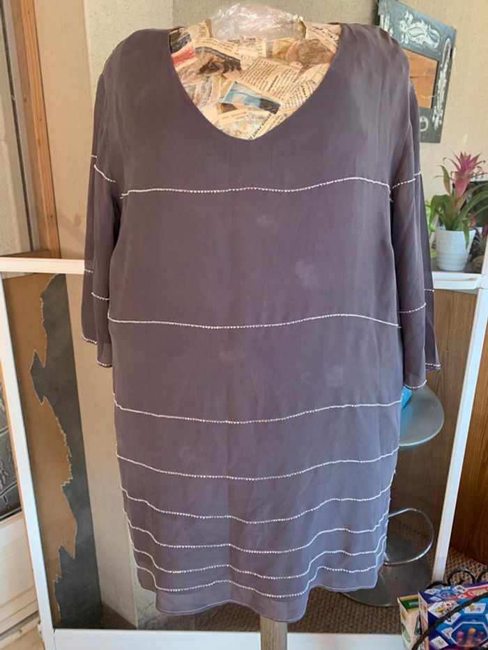 porté quelques fois fluide avec des strass il y a des taches blanches devant à plusieurs endroits voir sur photo