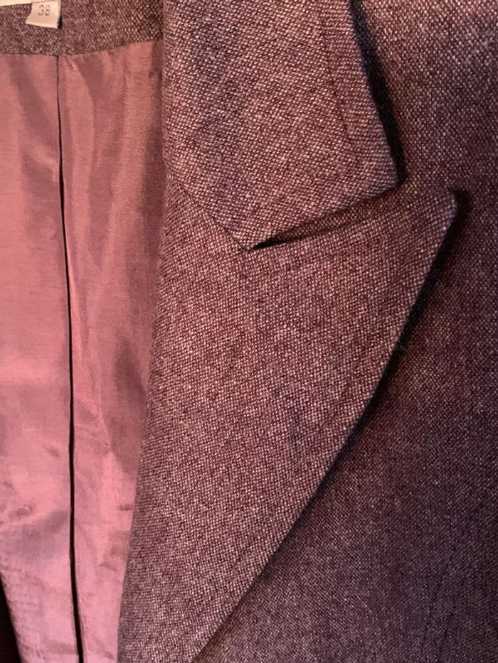 veste longue laine et polyester coloris prune chiné