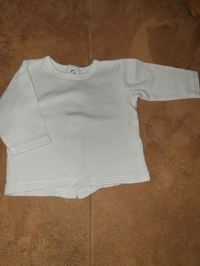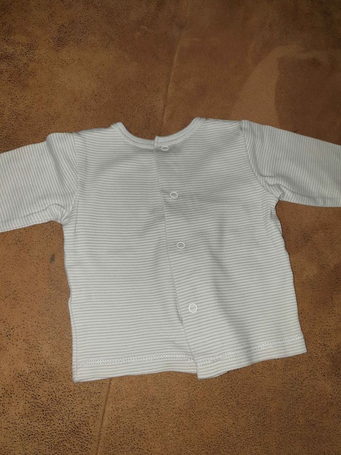 T-shirt manche longue très peu porté. Boutons pression dans le dos. Marque Les bébés sont comme ça ! Taille 1 mois. Maison non fumeur et sans animaux.