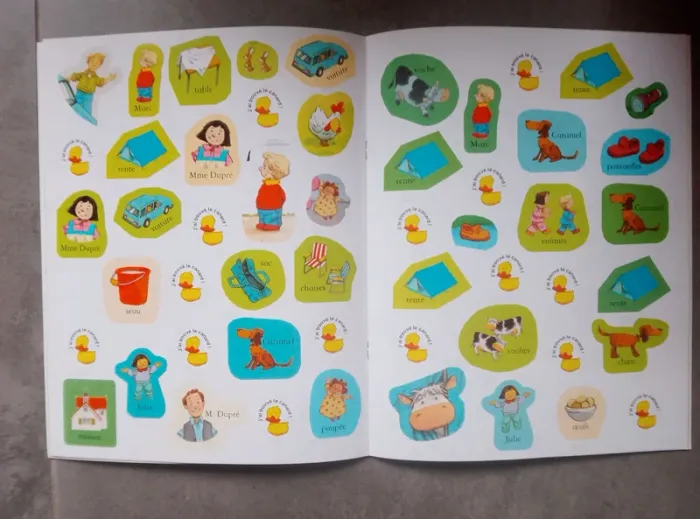 #livrelucie59166 #jeuxlucie59166 Une histoire, des mots à deviner et les autocollants, tout cela dans un seul et même livre. Une histoire des contes de la ferme avec des charmantes illustrations. Des mots à deviner dans le texte représenté sous forme de petites images. Et plus de 50 autocollants à utiliser qui correspondent au mot ainsi qu'un autocollant "j'ai trouvé le canard"