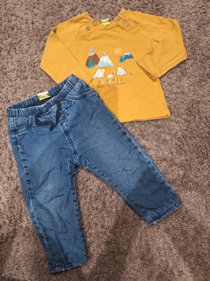 Bon état Tee shirt avec micro tâche Jean souple hyper confort avec des petits défauts mais peut encore bien servir🥰 #melaniegarriguesgarçon18mois