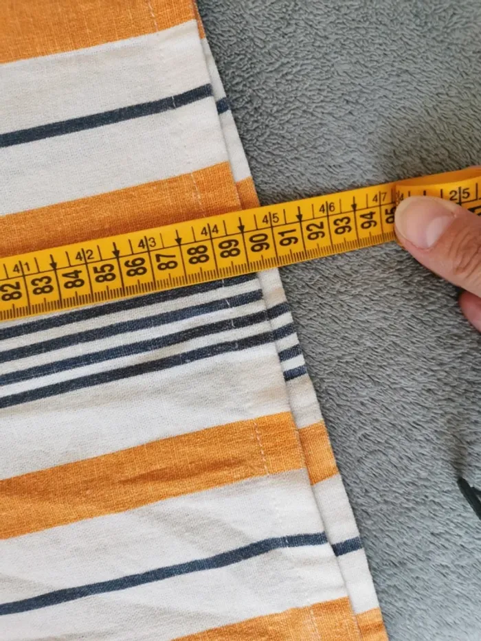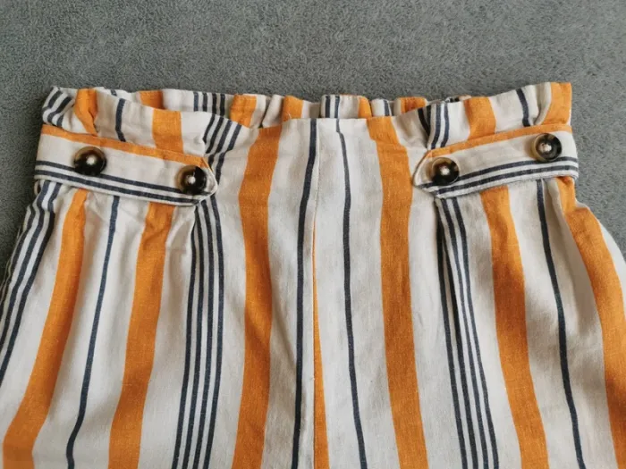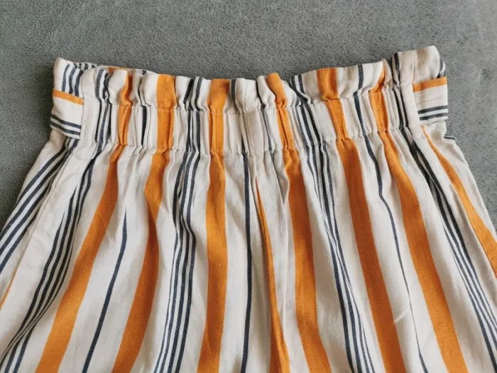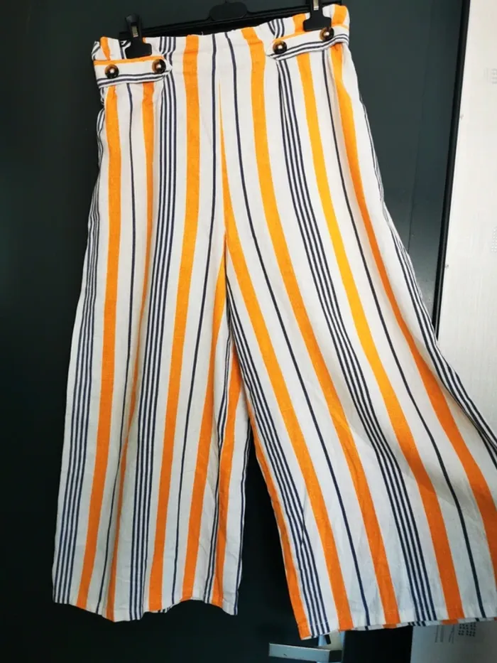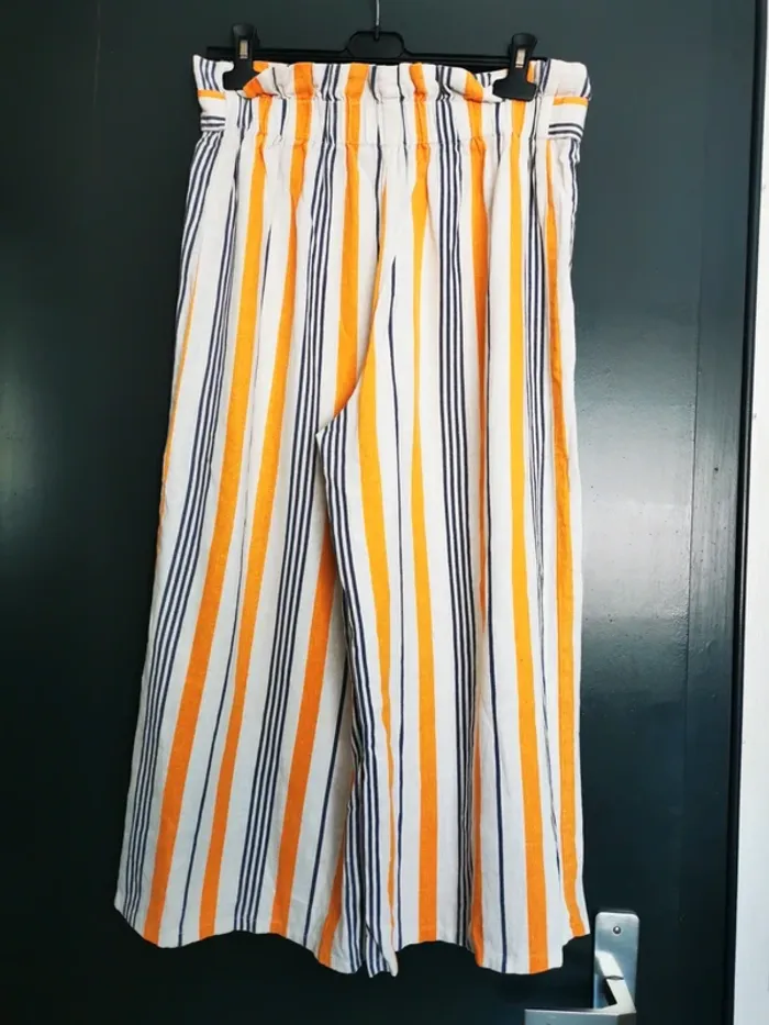 Pantalon large rayé C&A taille 38 en lin , élastique à la taille, environ 89cm de longueur.