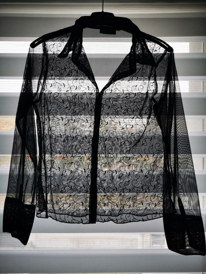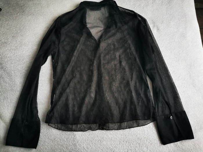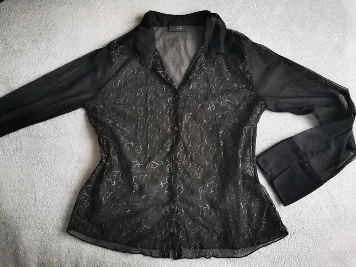 Chemise transparente kiabi avec broderies taille 40, plus d'étiquette, très bon état.