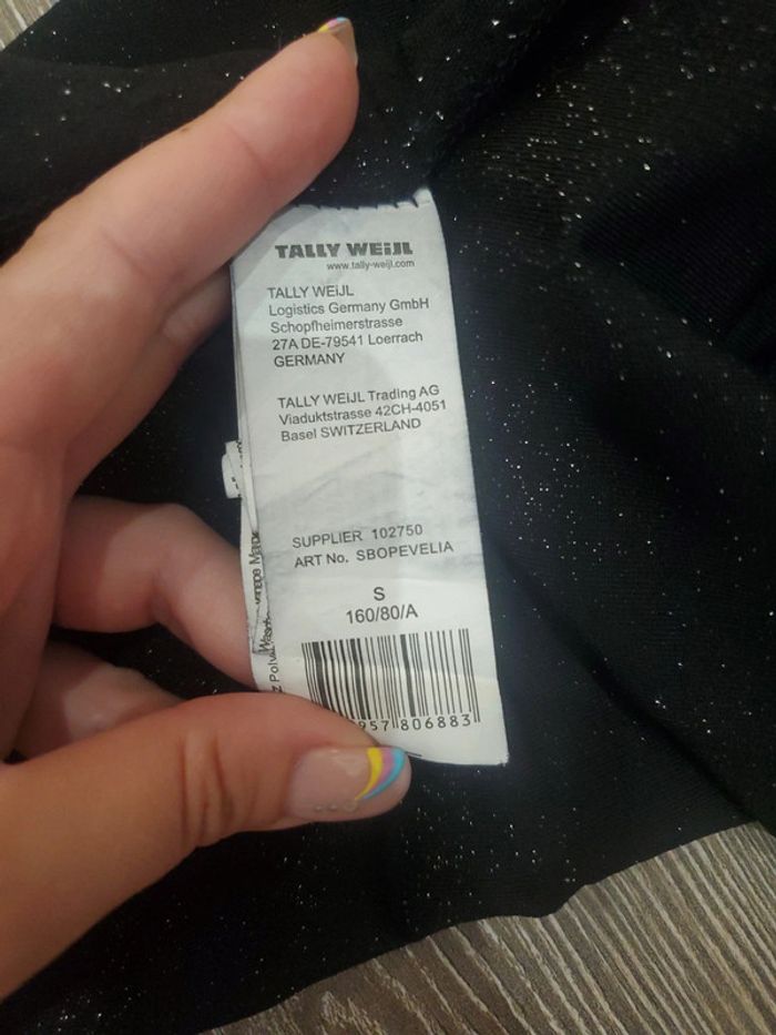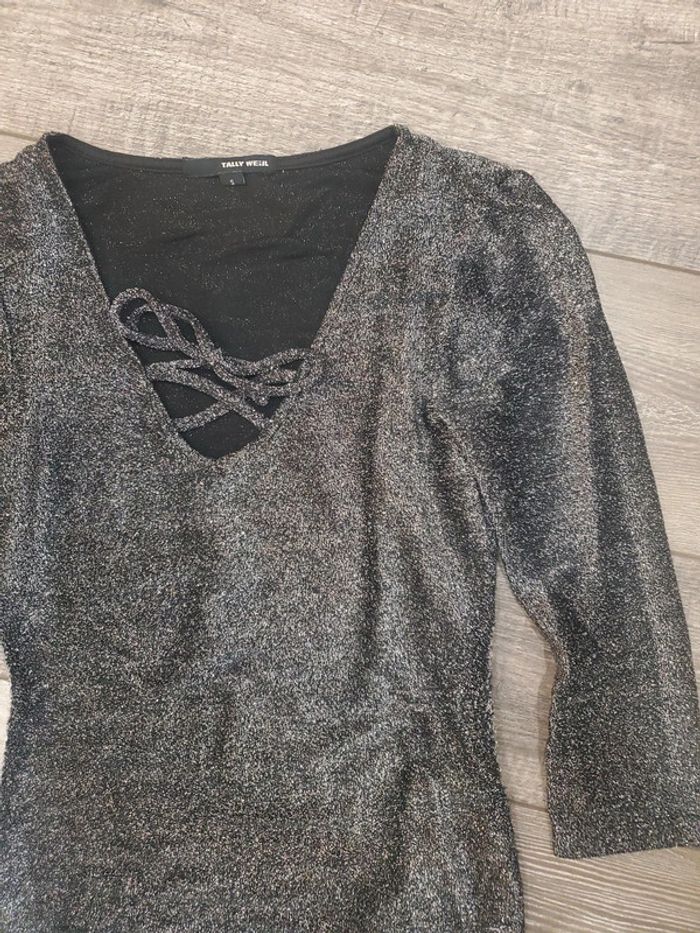 Légères usures sur les coutures des côtés et quelques fils métallisés tirés Etiquette taille S de chez Tally Weijl, taille petit, convient à un 32 / 34 81% polyamide #body #paillette #metal #tallyweijl #polyamide