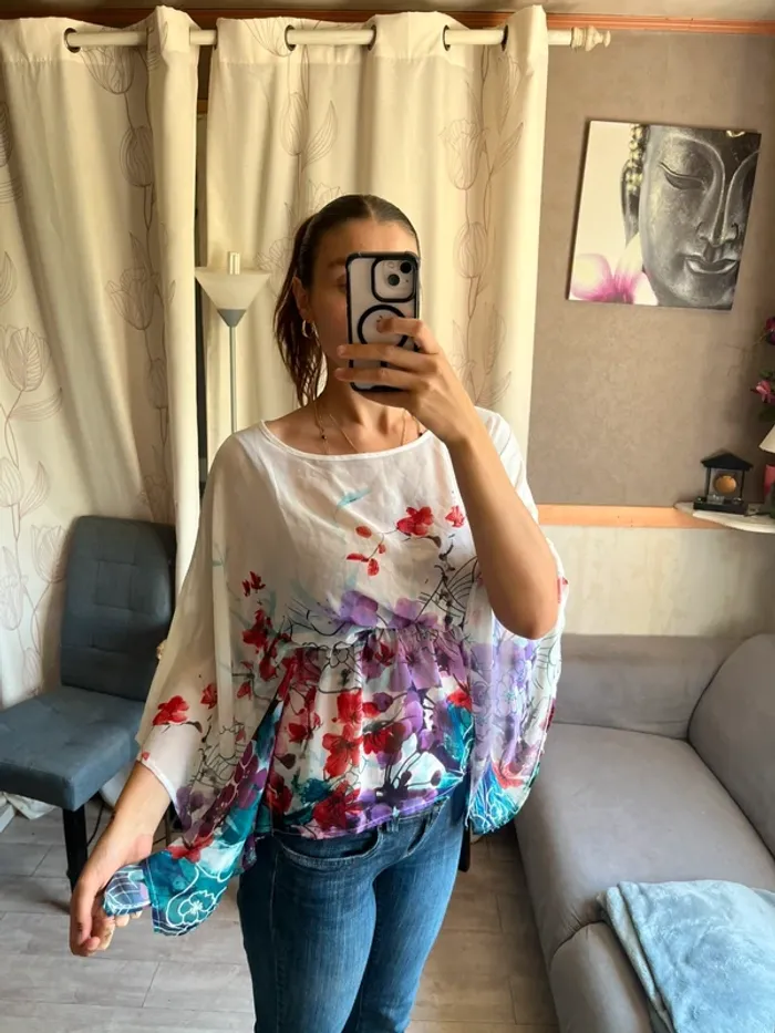 Blouse manches chauve souris fleurie bohème champêtre western - photo numéro 1