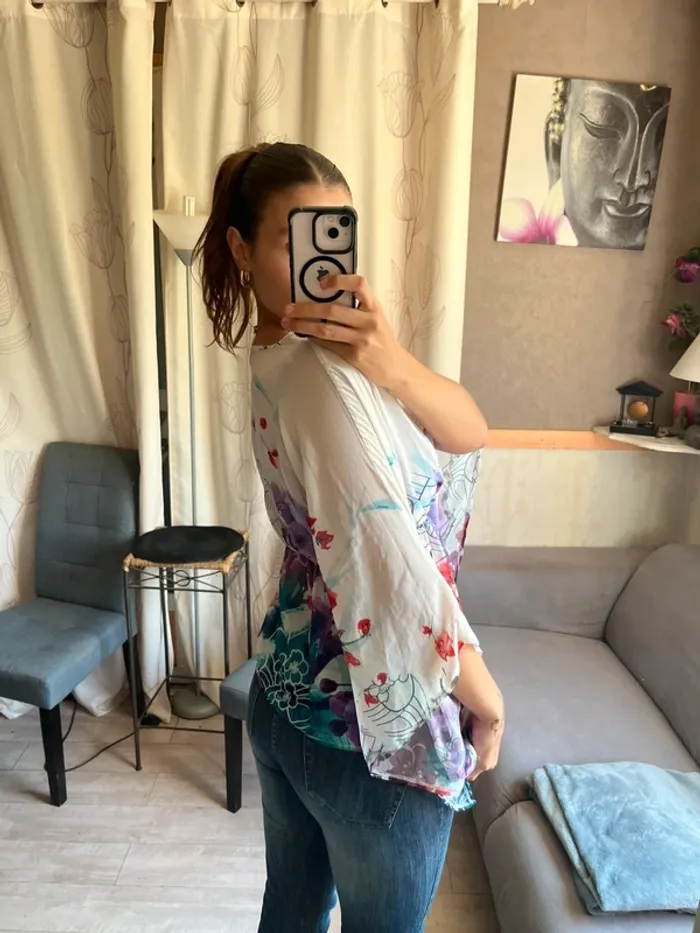 Blouse manches chauve souris fleurie bohème champêtre western - photo numéro 2