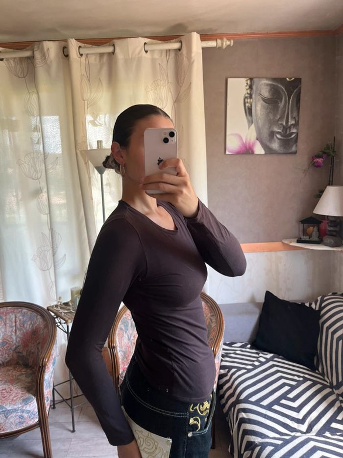 Top tee-shirt uni marron gainant - photo numéro 2