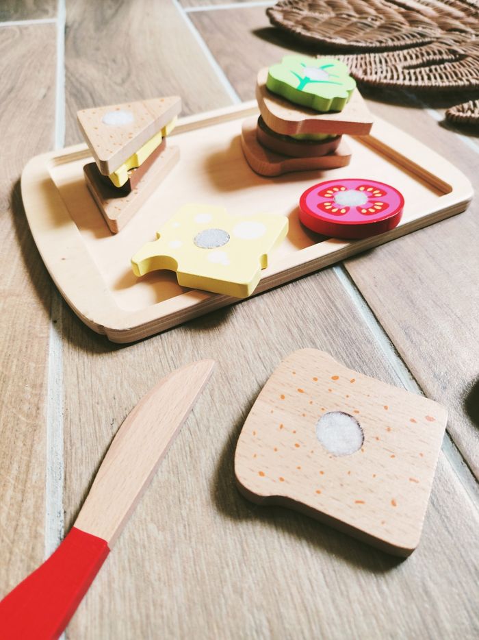 🥪Dinette sandwichs à composer avec divers aliments à scratch avec plateau en bois marque Vertbaudet JB1615