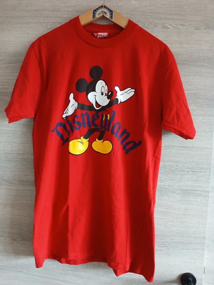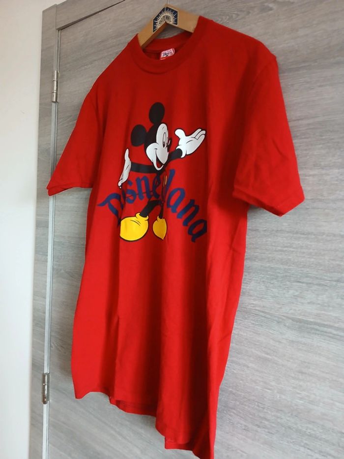 Tee-shirt long rouge imprimé Mickey Disney Vintage Taille L Made in U.S.A