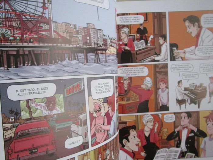 Harry Bonnet, 16 ans, fils d’un cuistot montmartrois, est fou de cinéma. Comment s’est-il retrouvé à Hollywood ? C’est simple. Il lui aura suffi d’une gifle, d’une caille rôtie et d’une assiette de pommes de terre pour traverser l’Atlantique et atterrir sur la colline mythique. L’Amérique ! Des stars à tous les coins de rue ! Une nuit, il suit son père à la cantine, s’introduit en catimini sur le plateau no 17, remplace au pied levé un second rôle souffrant et… tombe nez à nez avec Alfred Hitchcock. Le metteur en scène le plus célèbre du monde commence le tournage dont il rêve depuis quarante ans : l’adaptation d’une pièce de J. M. Barrie, l’auteur de Peter Pan. C’est un secret absolu. Le film porte un faux titre et Hitchcock lui-même a pris un nom de code. Mais pourquoi diable Harry a-t-il voulu voir les premières minutes du film fantôme ? Pourquoi a-t-il désobéi au maître du suspense ? Éditeur ‏ : ‎ Rue de Sèvres 104 pages Âge de lecture ‏ : ‎ 9 - 13 ans Dimensions ‏ : ‎ 22 x 28 cm Livre en excellent état Si plusieurs livres vous intéressent, n'hésitez pas à m'envoyer un message afin que je vous constitue un lot et ainsi bénéficier de réduction. #phil_peg_ruedesèvres #ruedesèvres #bd #hollywood #film #hitchcock