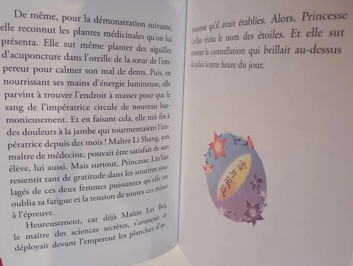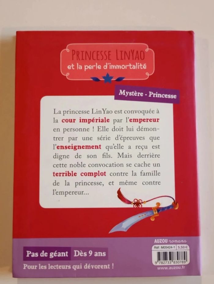 La princesse LinYao est convoquée à la cour impériale par l'Empereur en personne ! Elle doit lui démontrer par une série d'épreuves que l'enseignement quelle a reçu est digne du fils du souverain, le prince. Mais derrière cette noble convocation se cache un terrible complot contre la famille de la princesse, et même contre l'Empereur... La cour impériale est prête à tout pour découvrir le secret de l'immortalité ! Éditeur ‏ : ‎ AUZOU 96 pages Dimensions ‏ : ‎ 14 x 1 x 18.5 cm Livre en excellent état Je vends d'autres livres de la même collection #phil_peg_auzoupasdegéant