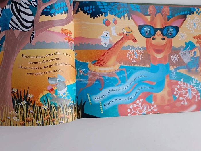 Dans les scènes plus farfelues les unes que les autres, l'enfant est invité à observer et chercher les éléments incongrus. Des illustrations hilarantes inspirées des Disney des années 1950. Des textes amusants écrits en rimes. À la fin de l'album : des idées d'activités autour des rimes à proposer à l'enfant pour développer son imagination Éditeur ‏ : ‎ KIMANE 24 pages Âge de lecture ‏ : ‎ 3 - 6 ans Dimensions ‏ : ‎ 29.2 x 0.7 x 22.5 cm Livre en très bon état #animaux
