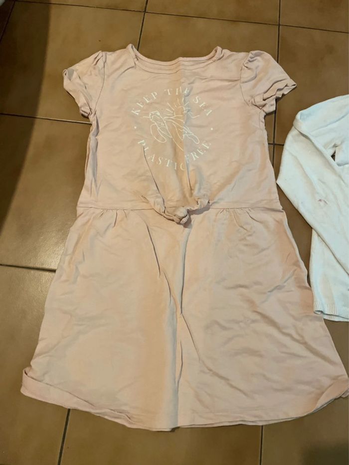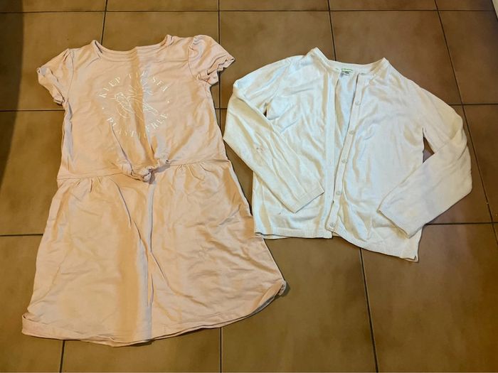 Ensemble 2 pièces fille taille 10 ans comprenant une robe de la marque kiabi et un gilet de la marque vertbaudet en excellent état sauf voir photo toute petite tache sur le coude du gilet Lot 481 #elona3105_fille_10ans