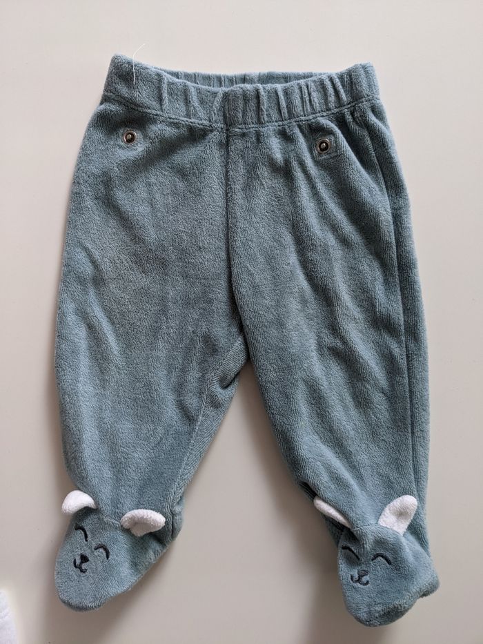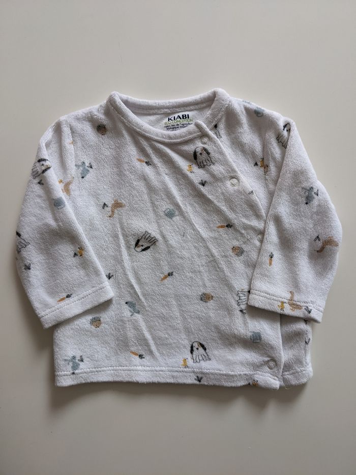 Ensemble avec haut manches longues et pantalons avec pieds. Très peu porté. Très bon état. Taille : 3 mois Marque : kiabi