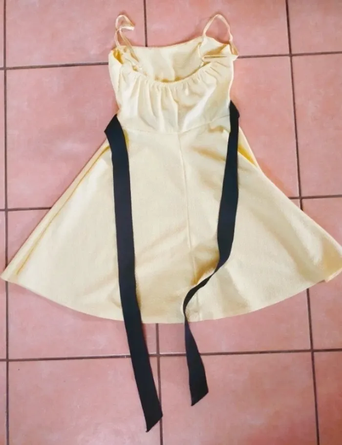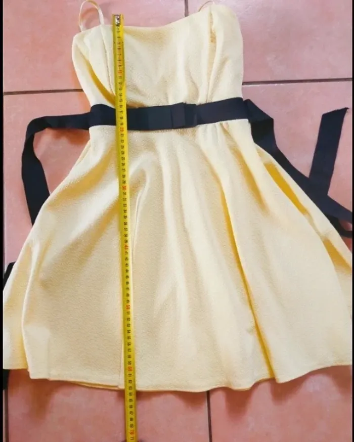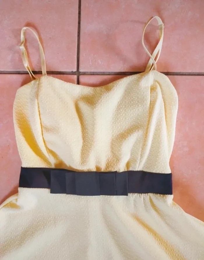 Jolie robe jaune pal. Petite robe bustier ou fine bretelles réglable Robe d'été, ou robe de cérémonie. Rembourrage au niveau de la poitrine. Matière extensible. Taille s