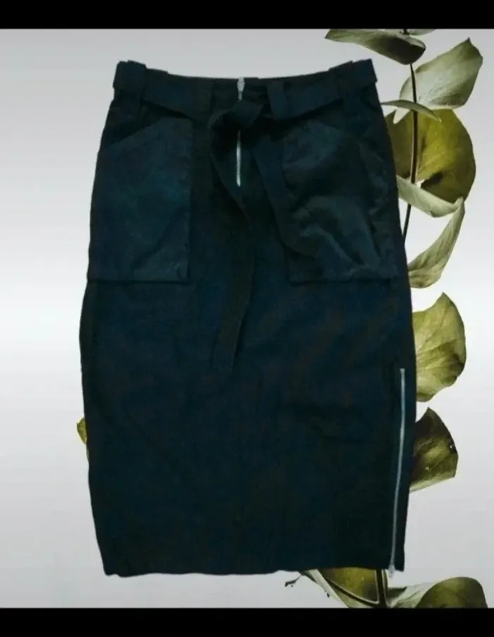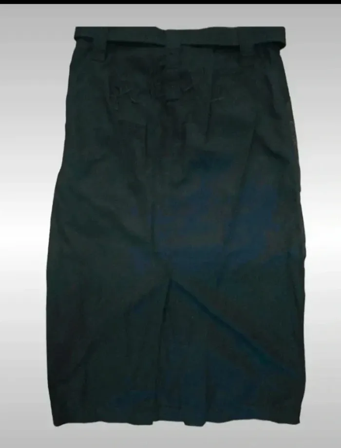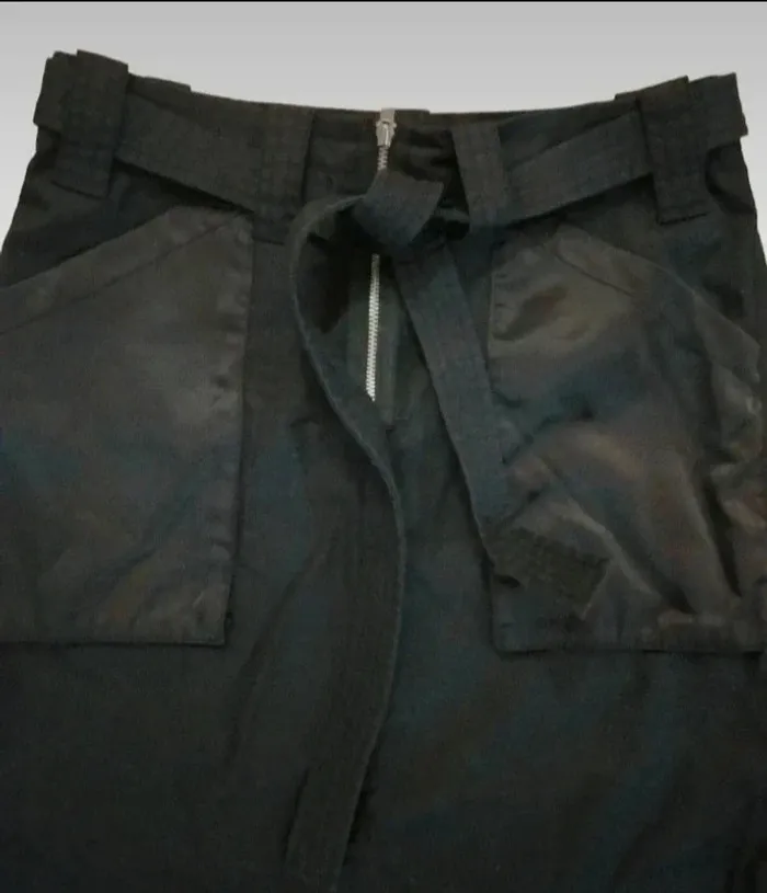 Jupe mi-longue noir poches satiné. ceinture kimono Jupe type mangas japonnais asiatique Écriture asiatique sur l'arrière. Fendu sur le bas a l'arrière. Excellent état