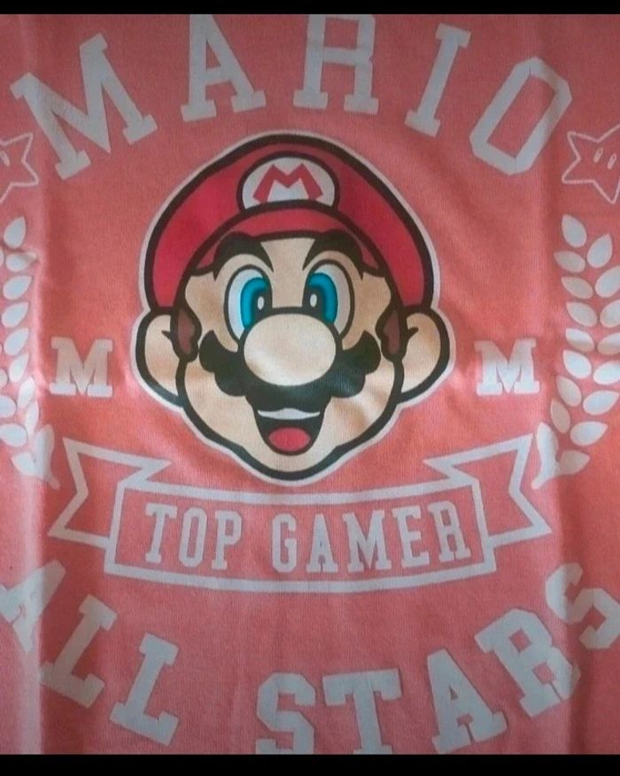 T-shirt manches courtes, super mario all stars , top gamer. Super mario bros taille 5 ans couleurs saumon Printemps été 100% coton Réductions progressive à partir de 2 articles