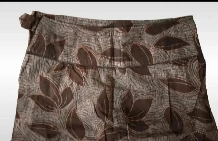 Jolie jupe marron ,printemps été imprimé feuilles Avec ouverture sur le côté. Taille 36 S
