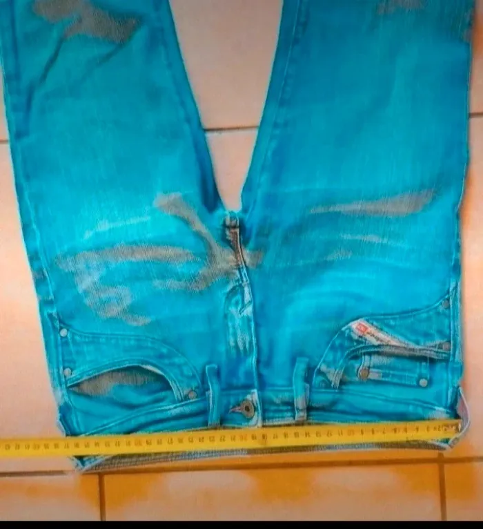Jean vintage Jean légèrement extensible légèrement taille basse Coupe droit Taille 38 Dimensions en photo.