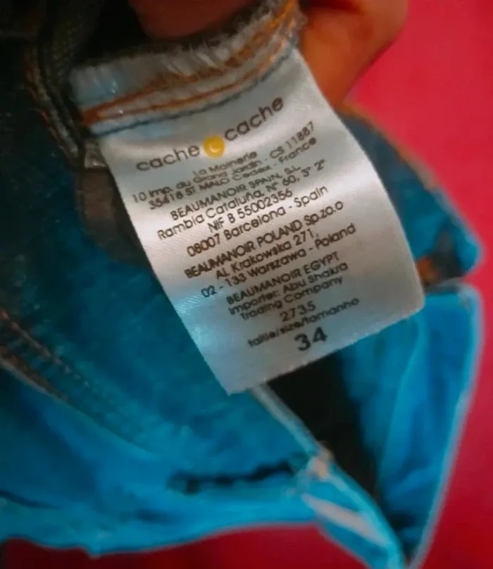 Pantalon Jean Stretch coupe droite skinny Taille 34 cache cache dénommé short Un léger accro sur le genou ( c'est un jean donc pas de trous) voir photo 7