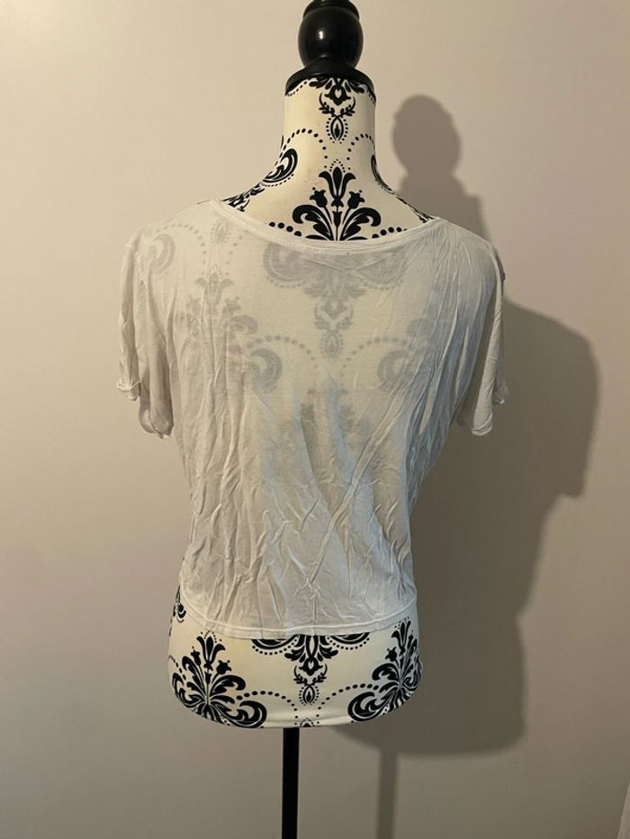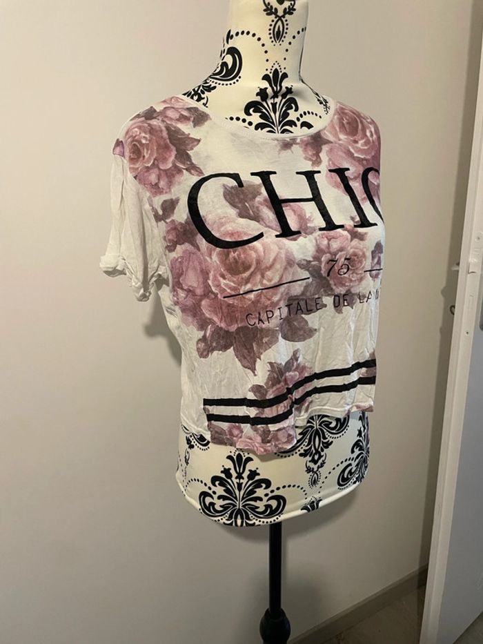 Bonjour je vends mon T-shirt à manches courtes blanc à motifs fleuris rose pimkie taille 36 Il est en excellent état très peu porté #tiatia_femme_taille36