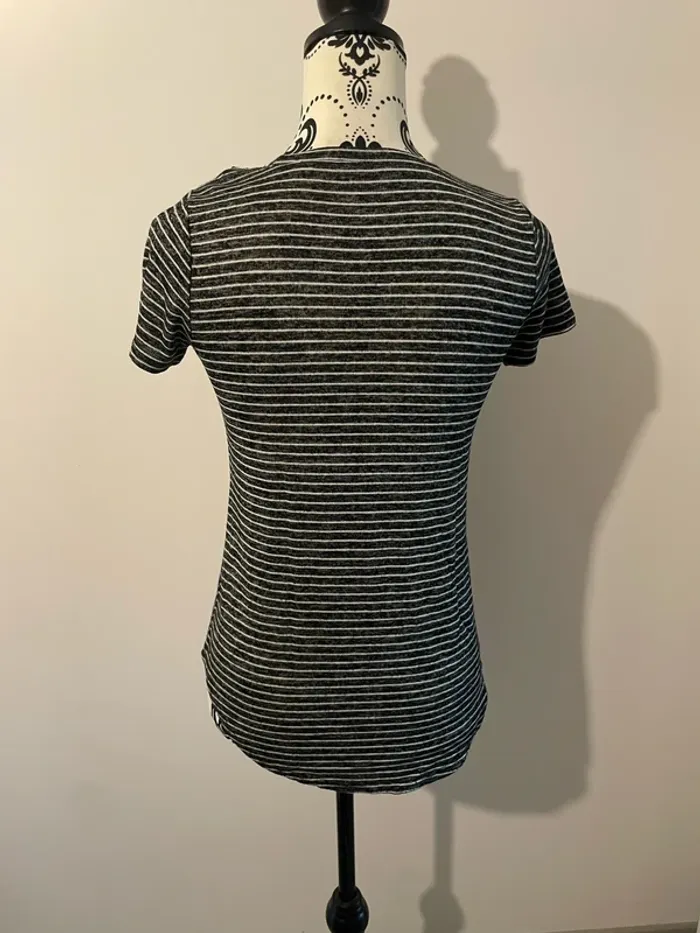 T-shirt à manches courtes noir rayure blanc lacet col rond Hollister taille XS - photo numéro 1